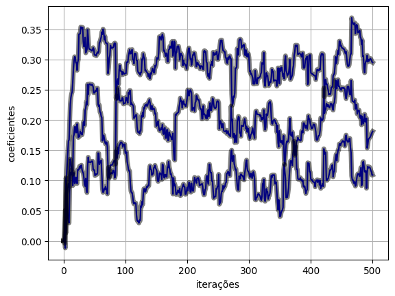 return y, e, w(y_torch_autograd, e_torch_autograd, w_torch_autograd) = lms_torch_autograd(x, d, eta, M)plot_ws(w_torch_autograd.numpy(), w_lms)